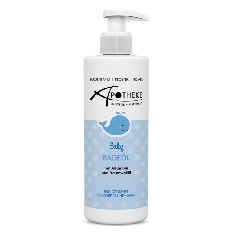 ​Hautschonendes und schützendes Badeöl für die zarte Babyhaut. Ideal für die tägliche Reinigung von Gesicht, Körper und Haar.