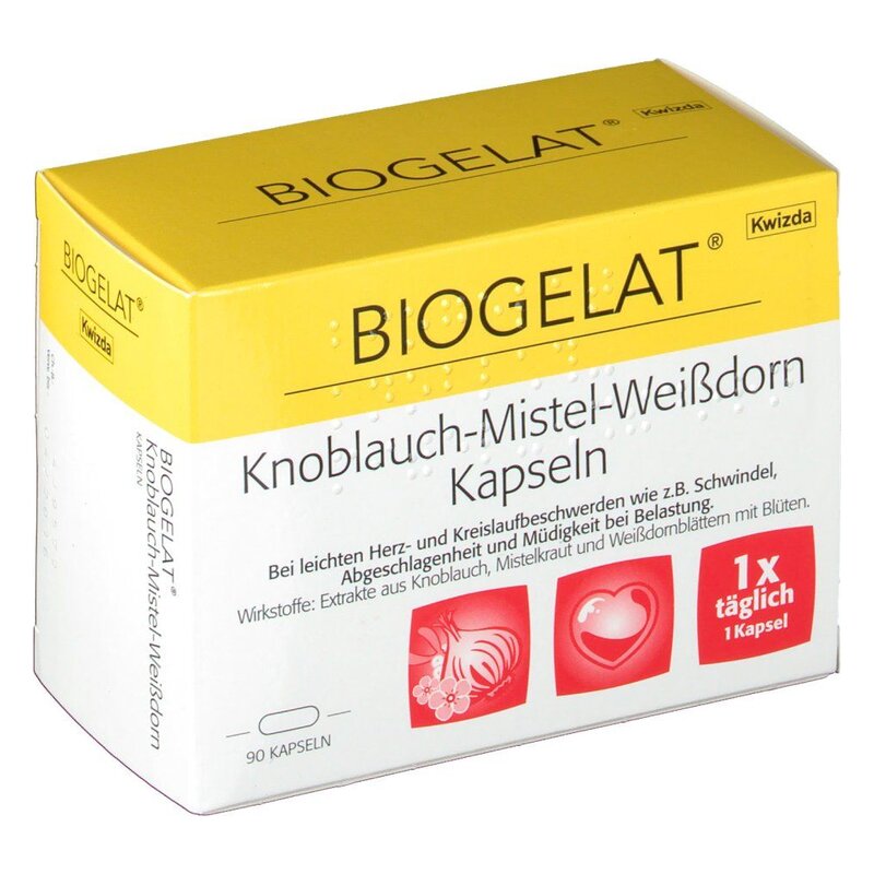 | Inhaltsstoffe: | Allii sativi bulbus, Folium Crataegi cum flore, Knoblauch-Fluessigextrakt (2-3, Mistelkraut-Trockenextrakt (4-6, Visci herba, Weissdornblaetter mit Blueten-Trockenextrakt (3,5-5 |