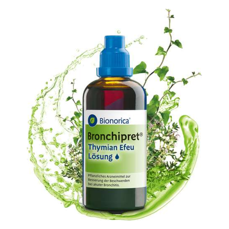 In dem pflanzlichen Arzneimittel werden qualitativ hochwertige Thymian- und Efeu-Extrakte kombiniert. Die Bronchipret® Lösung enthält die Extrakt-Kombination dabei in hoch konzentrierter* Form. Eine Dosis Lösung enthält ca. 33% mehr pflanzliches Ausgangsmaterial als der Bronchipret® Saft. So entsteht ein pflanzliches Präparat, dessen Wirkspektrum auf die Bedürfnisse von erwachsenen Patienten mit akuter Bronchitis oder starkem Erkältungshusten abgestimmt ist.