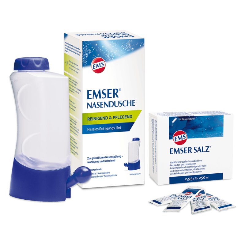 Packungsinhalt: 1 Nasendusche, 4 Beutel Emser Nasenspülsalz