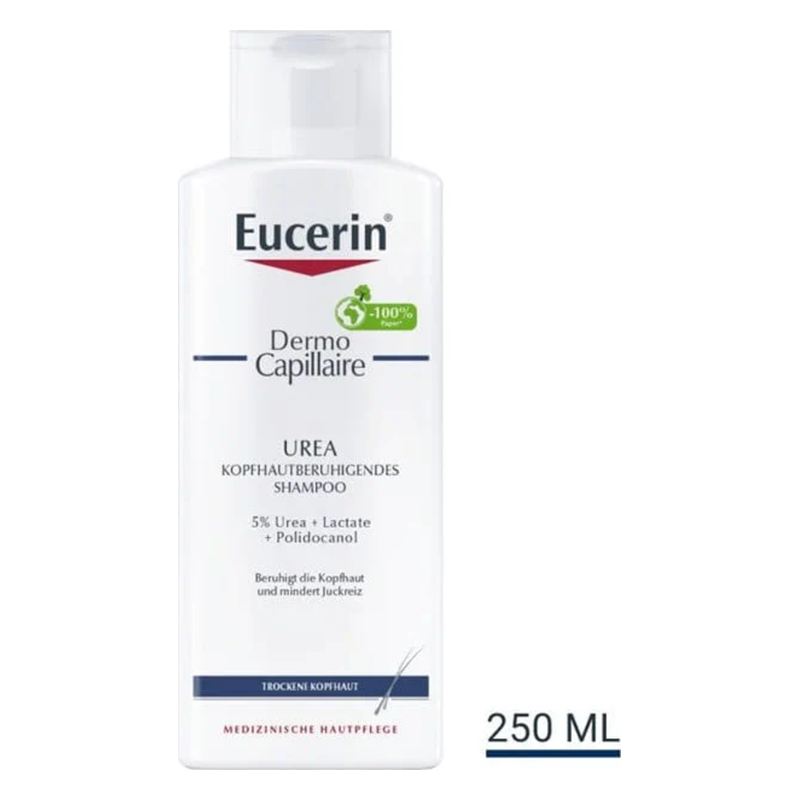 Eucerin DermoCapillaire KOPFHAUTBERUHIGENDES UREA SHAMPOO wurde speziell für die trockene und juckende Kopfhaut entwickelt. Angereichert mit Urea und Lactat – zwei hauteigenen Feuchthaltefaktoren – gibt es Ihrer trockenen, juckenden Kopfhaut die nährende Pflege, die sie braucht