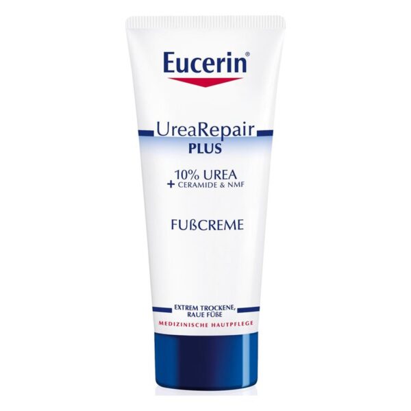 Eucerin Repair Fußcreme 10% Urea versorgt raue bis extrem trockene Füße, auch rissige Fersen, mit der benötigten Intensivpflege. Angereichert mit Urea und Lactat spendet die Fußcreme trockenen, extrem trockenen, rauen und rissigen Füßen sowie bei Hornhaut, Schrunden und Druckstellen lang anhaltende Feuchtigkeit. Sie lindert Trockenheit und Unbehagen sofort und die Füße fühlen sich glatt und weich an