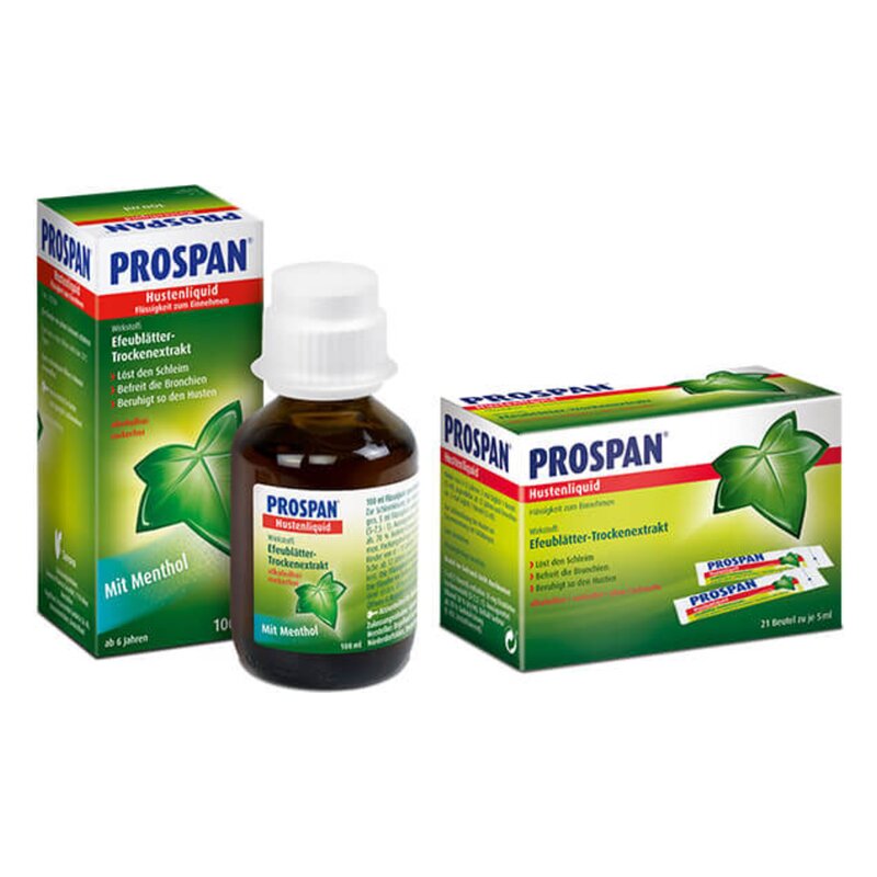 Mit der Kraft des Efeus löst Prospan den Schleim, befreit die Bronchien und beruhigt so den Husten.  Prospan ist rein pflanzlich, gut verträglich, für jedes Alter geeignet und in verschiedene Anwendungsformen erhältlich. Die Prospan Hustenliquids sind ideal zum Verreisen. Ob Handtasche, Rucksack oder Laptoptasche – die praktischen Saft- Einzelportionen haben überall Platz. Sie sind hitzebeständig und es ist kein Löffel oder Wasser nötig. Sie haben einen frischen Mentholgeschmack und sind ohne Zucker oder Alkohol. Für Kinder ab 6 Jahren geeignet.