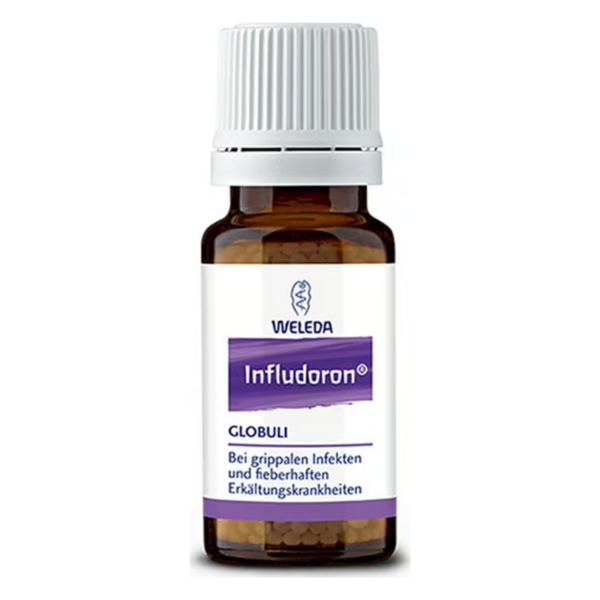 Bei den ersten Erkältungsanzeichen eingenommen, können Infludoron® Globuli den vollständigen Ausbruch der Erkrankung oft noch verhindern oder abmildern. Eisenphosphat (Ferrum phosphoricum) stärkt die natürlichen Abwehrkräfte, lindert Entzündungserscheinungen und reguliert die Körpertemperatur, ohne Fieber zu unterdrücken. Eisenhut beruhigt bei hohem Fieber und lindert Schmerzen. Eukalyptus verhilft zu besserer Durchatmung. Zaunrübe und Wasserhanf regulieren die vermehrte Schleimbildung und wirken lindernd bei Gliederschmerzen und Zerschlagenheitsgefühl. Infludoron® Globuli sind alkoholfrei und eignen sich besonders für empfindliche Personen, Kinder, Schwangere, Säuglinge und stillende Mütter.